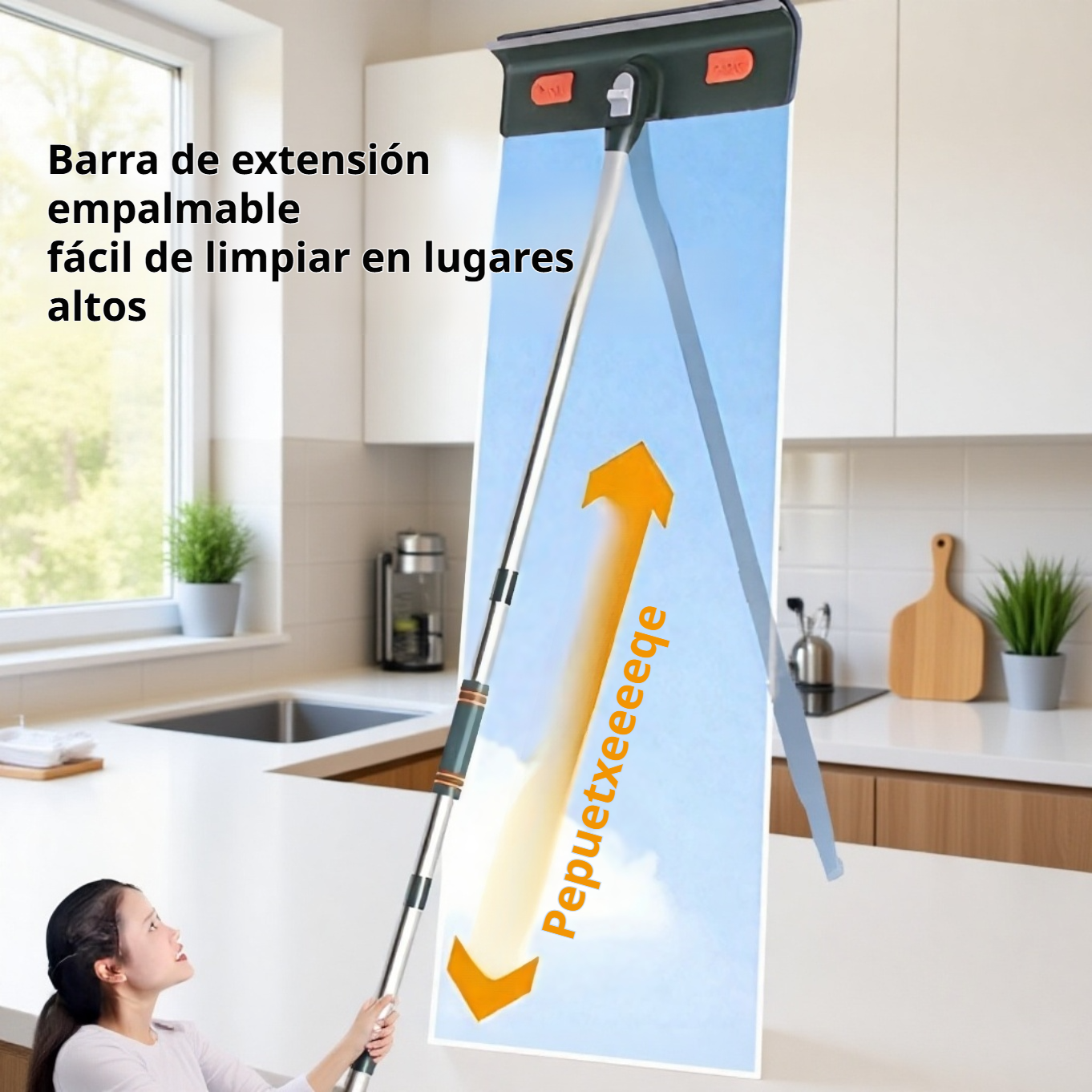 ● Varilla de empalme extendida que permite limpiar ventanas altas y de difícil acceso sin necesidad de escaleras, brindando mayor seguridad y comodidad.