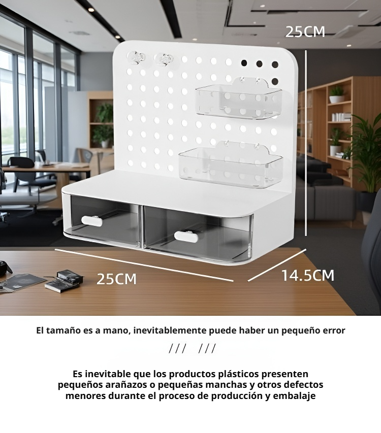 ● Diseño vertical con estante y tablero de agujeros, perfecto para maximizar el espacio de almacenamiento en dormitorios y hogares modernos. ● Estilo crema elegante que se integra fácilmente en cualquier decoración, aportando un toque sofisticado y cálido a tu ambiente. ● Mesa multifuncional ideal para estudiar, trabajar o organizar tus objetos personales, manteniendo todo ordenado y al alcance de la mano. ● Estructura resistente y materiales de alta calidad que garantizan durabilidad y estabilidad para un uso diario sin preocupaciones. ● Fácil de montar y limpiar, pensado para ofrecerte practicidad y comodidad en tu vida cotidiana.